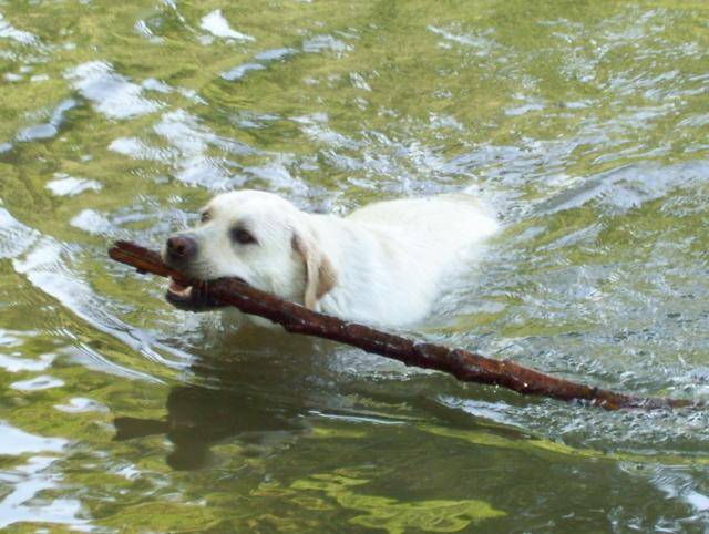 de l'eau, un bâton et je suis le plus heureux des chiens.......