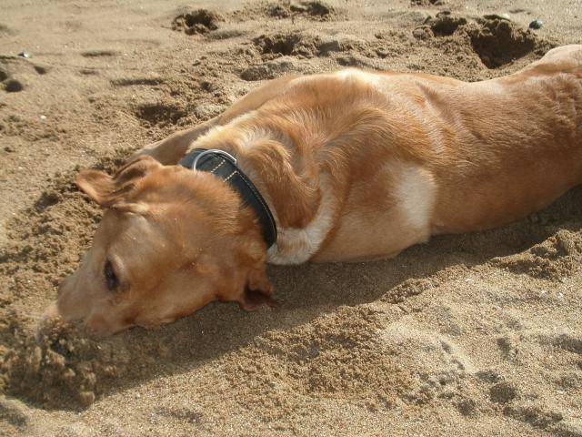 Rien de tel que de se rouler et se mettre le museau dans le sable