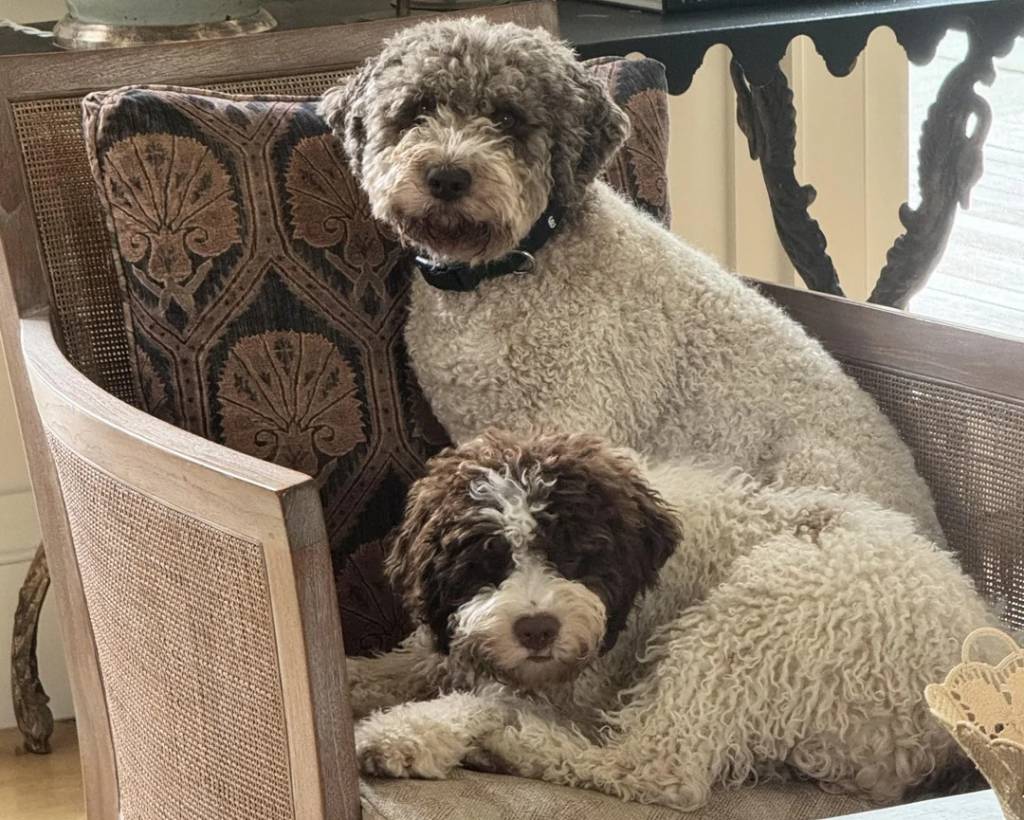 Deux Lagotto Romagnolo assis sur une chaise