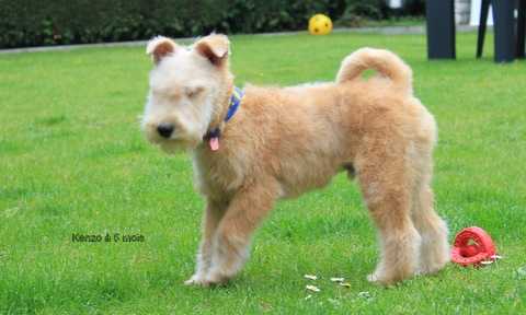 Un Schnauzer Moyen joue avec un Lakeland Terrier