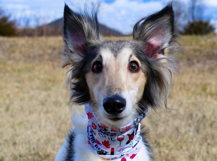 Un Lévrier Écossais joue avec un couple de Lévriers de Soie