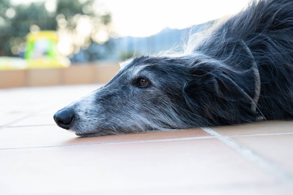 Un Lévrier Écossais joue avec un couple de Lévriers de Soie