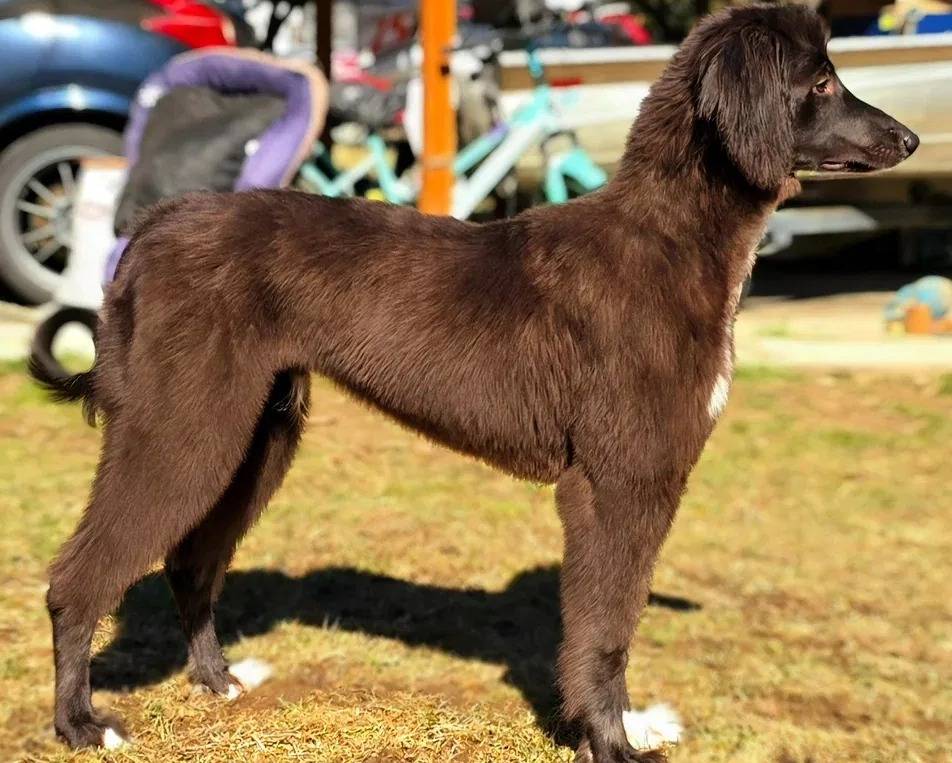 Profil d'un Lévrier de Soie sur une surface gazonnée