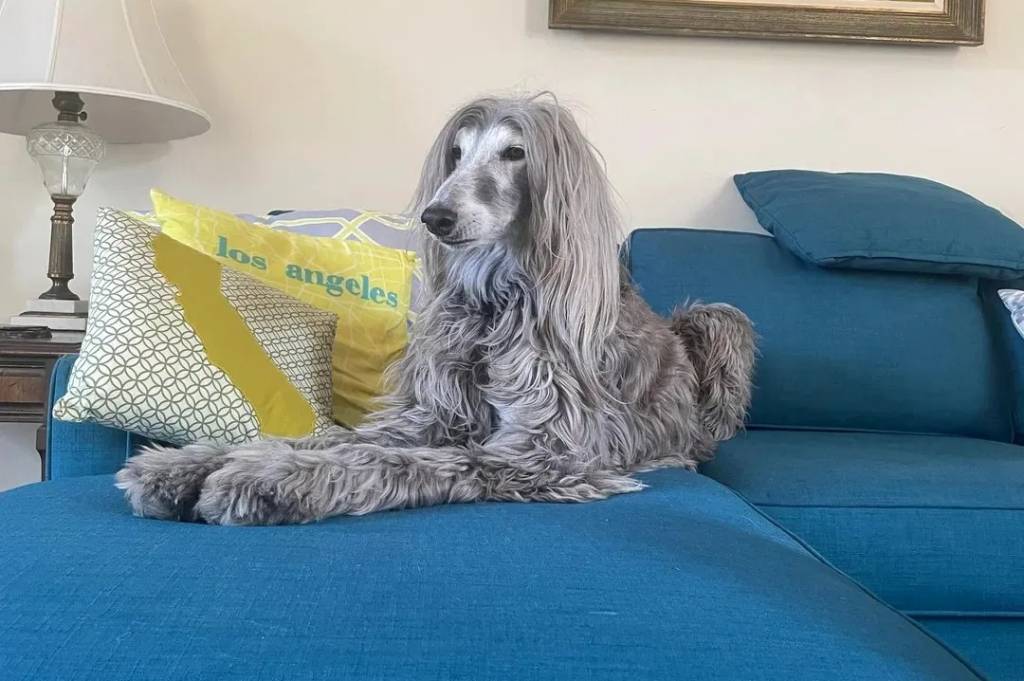 Un Lévrier de Soie allongé sur un canapé et semblant détendu
