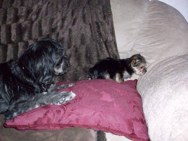 Moi et Chanelle, elle me surveille pour que je ne tombe pas. Elle me retient avec sa patte si je m'aventure trop loin....