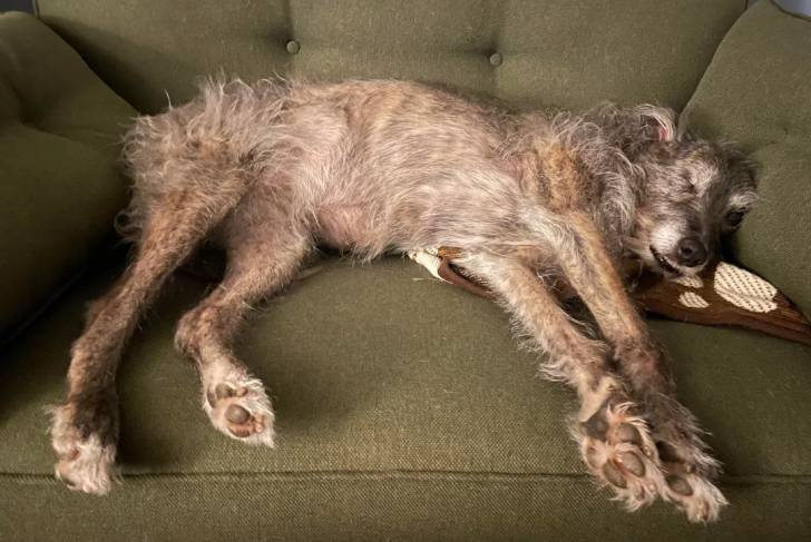 Un Lurcher allongé sur un canapé et semblant dormir