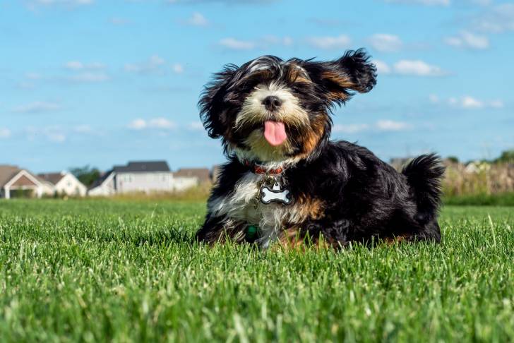 Un petit Mal-Shi joue et aboie