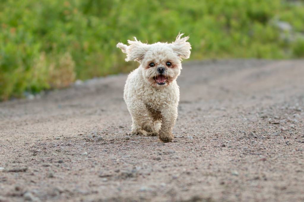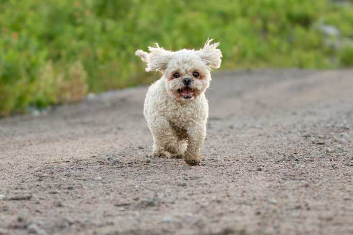Un petit Mal-Shi joue et aboie