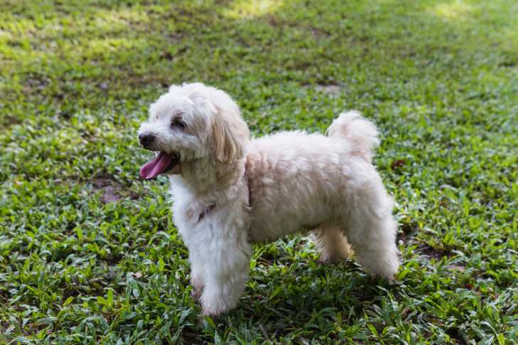 Un petit Mal-Shi joue et aboie