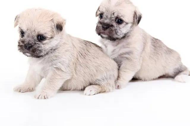 Deux Malti-pugs assis sur un fond blanc