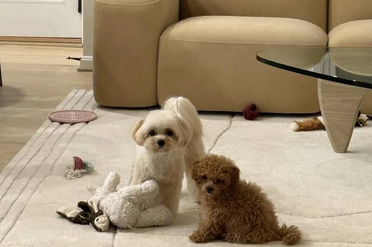 Deux Maltipoo sur un tapis