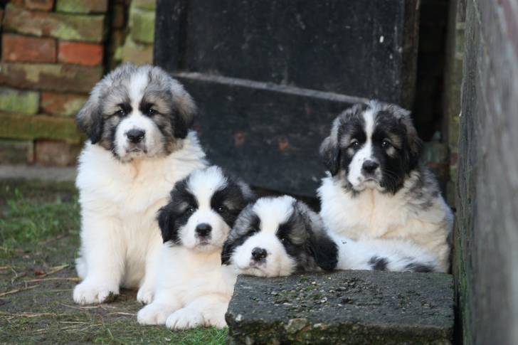 Des chiots Mâtin des Pyrénées apprennent à utiliser une longe