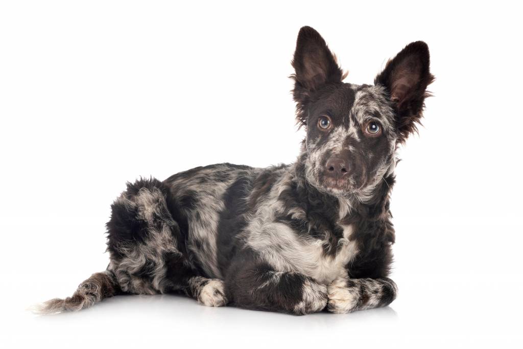Quatre Mudis et un Chien de Berger Croate lors d'une course d'agilité