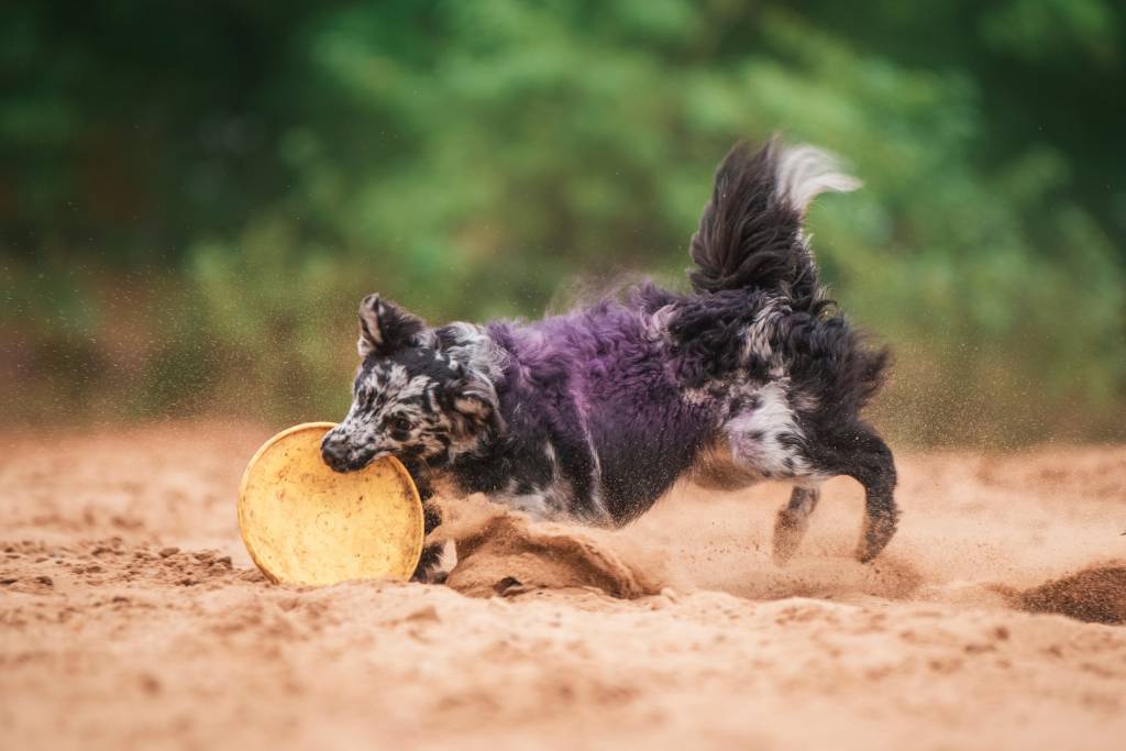 Quatre Mudis et un Chien de Berger Croate lors d'une course d'agilité