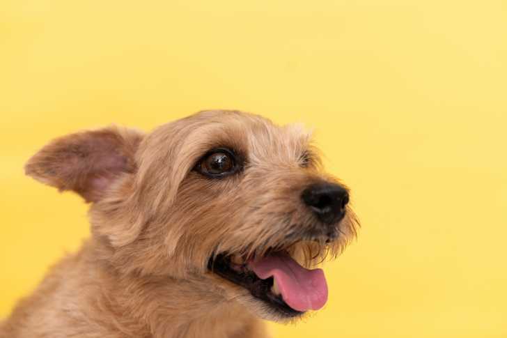 Un chiot Norfolk Terrier réagit aux sons de sa maîtresse