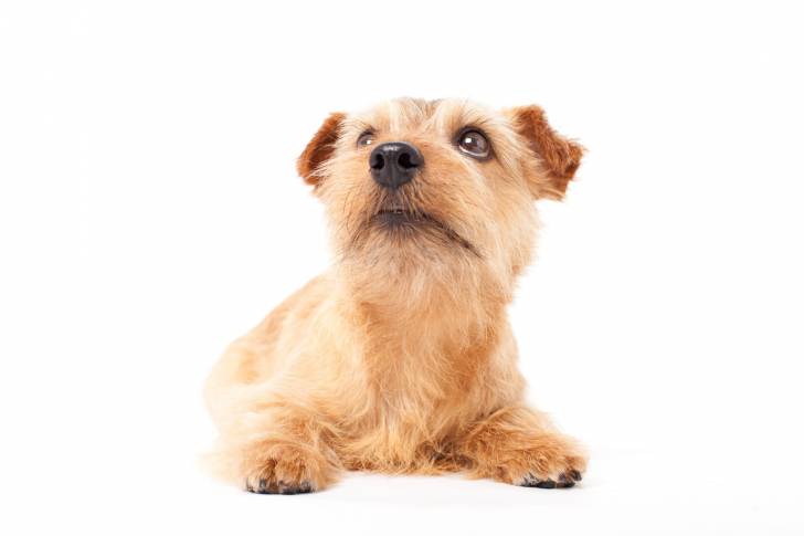 Un chiot Norfolk Terrier réagit aux sons de sa maîtresse