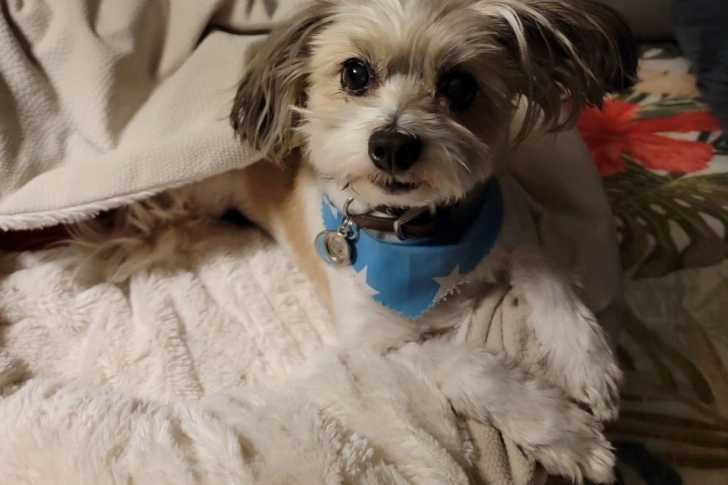 Un Papastzu allongé sur un canapé sous une couverture.