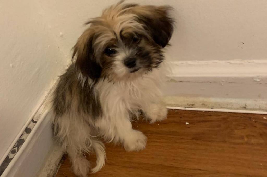 Un Papastzu assis sur un plancher en bois dans le coin d'une pièce