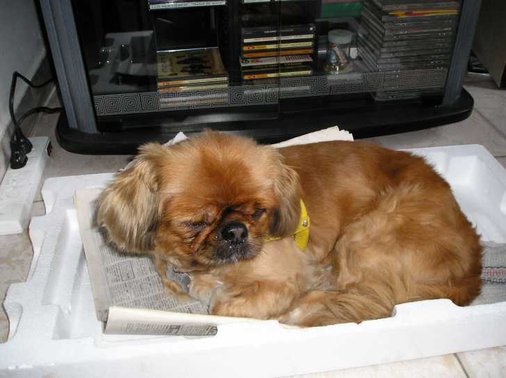 Ronflements sonores d'un Pekinois endormi