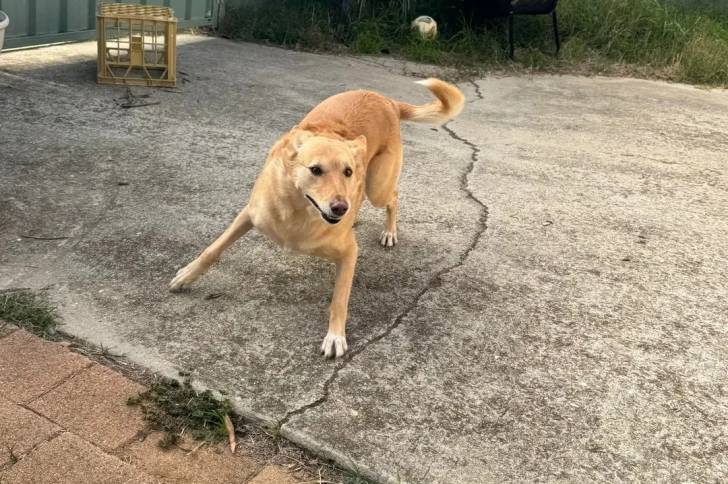 Un Pembroke Kelpie Dog sur une surface bétonnée