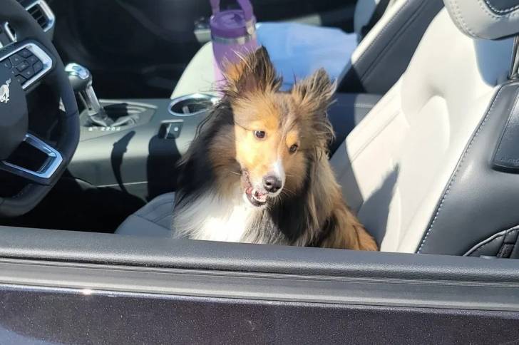 Un Pembroke Sheltie dans une voiture et semblant détendu