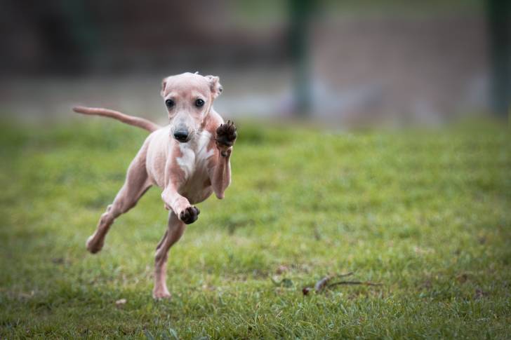 Des petits lévriers italiens en plein jeu
