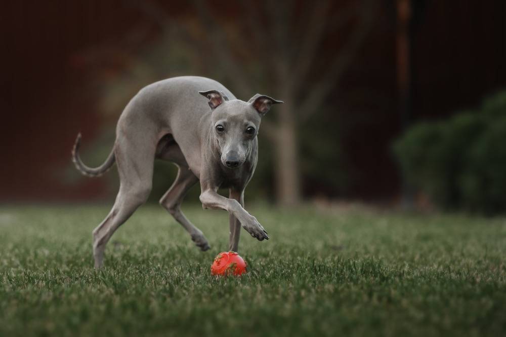 Des petits lévriers italiens en plein jeu