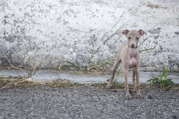 Un Petit Lévrier Italien sur des gravillons