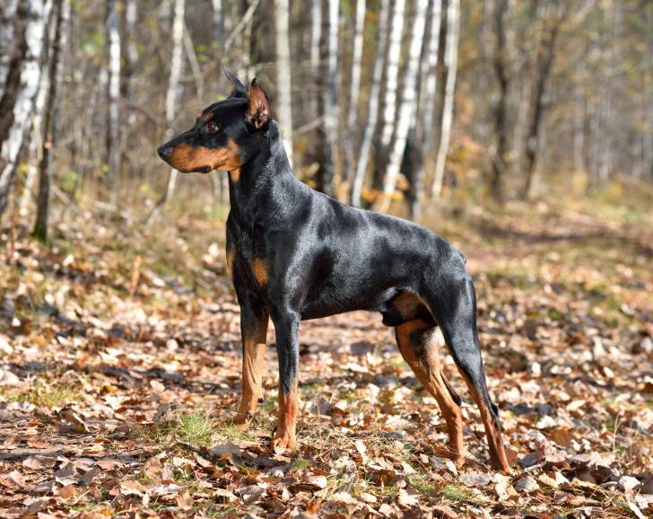 Un Pinscher Moyen et un Berger des Tatras jouent ensemble