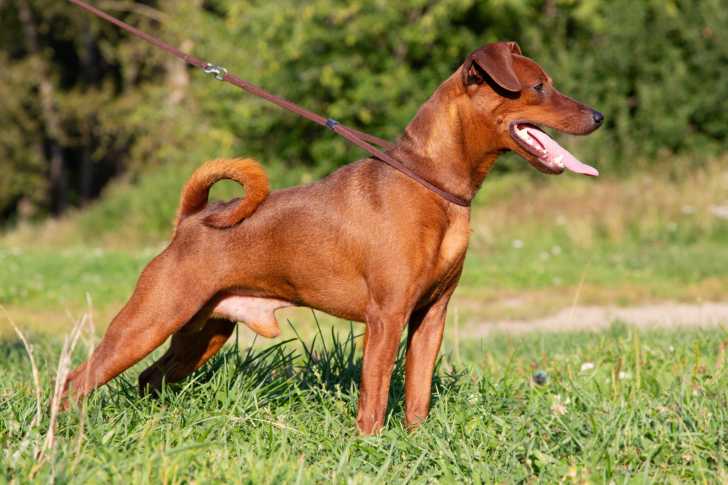 Un Pinscher Nain rouge cerf debout dans l'herbe