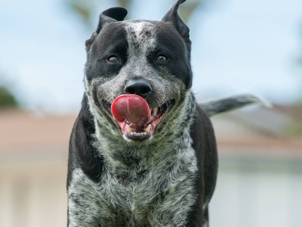 Des Pits Heeler courent vers leur maître pour avoir des caresses