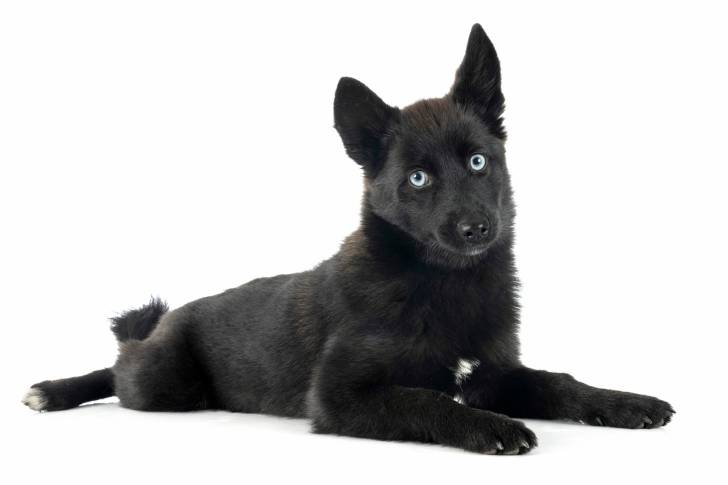 Des chiots Pomskies aux yeux bleus découvrent le monde