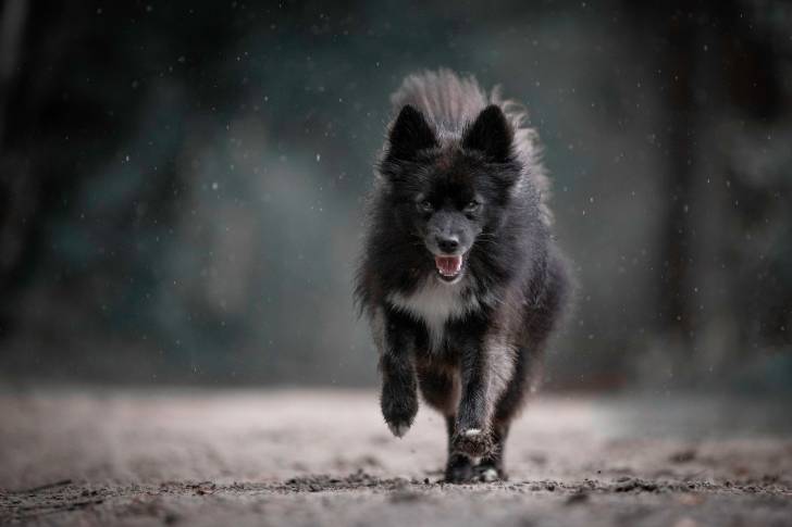 Des chiots Pomskies aux yeux bleus découvrent le monde