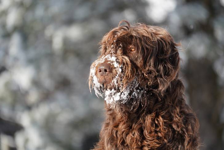 Un Pudelpointer se rapproche de sa proie puis marque l'arrêt