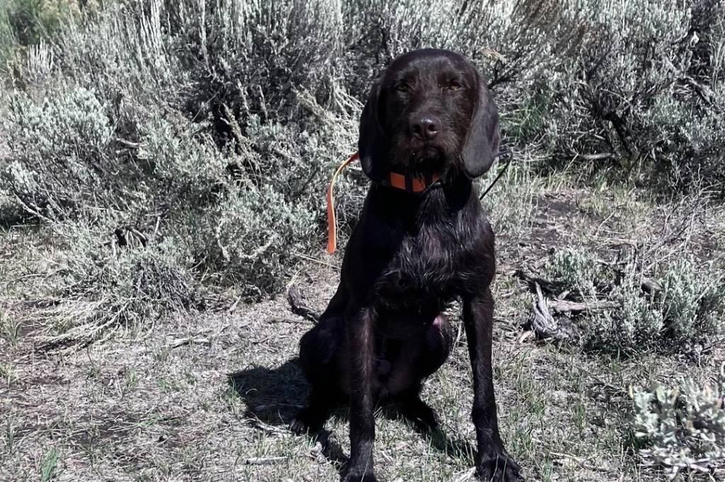 Un Pudelpointer se rapproche de sa proie puis marque l'arrêt