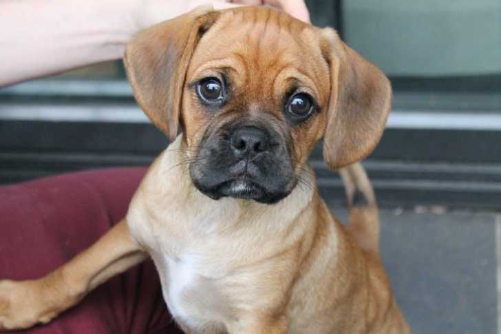 Un Pugalier faisant face à la caméra et assis sur un canapé