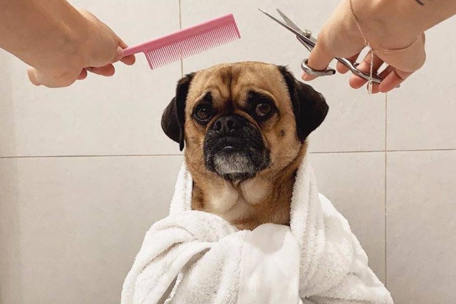 Un Pugalier portant une serviette dans une salle de bain