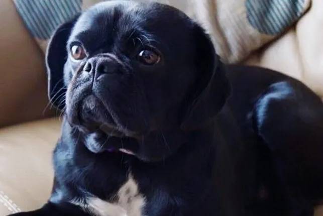 Un Pugalier allongé sur un canapé beige