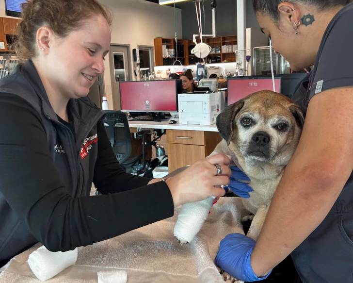 Un Puggle se faisant bander la patte
