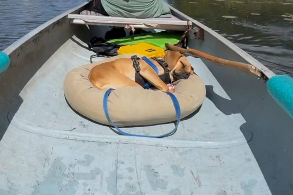 Un Puggle allongé sur un coussin dans un canapé