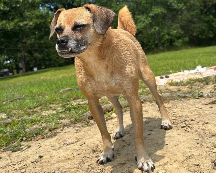 Un Puggle sur une surface sableuse