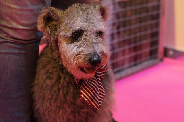Un jeune Pumi s'exerce à l'obstacle du tunnel d'agility