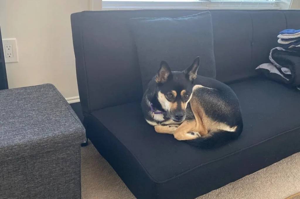 Un Rat-Cha allongé sur un canapé et portant un collier autour du cou