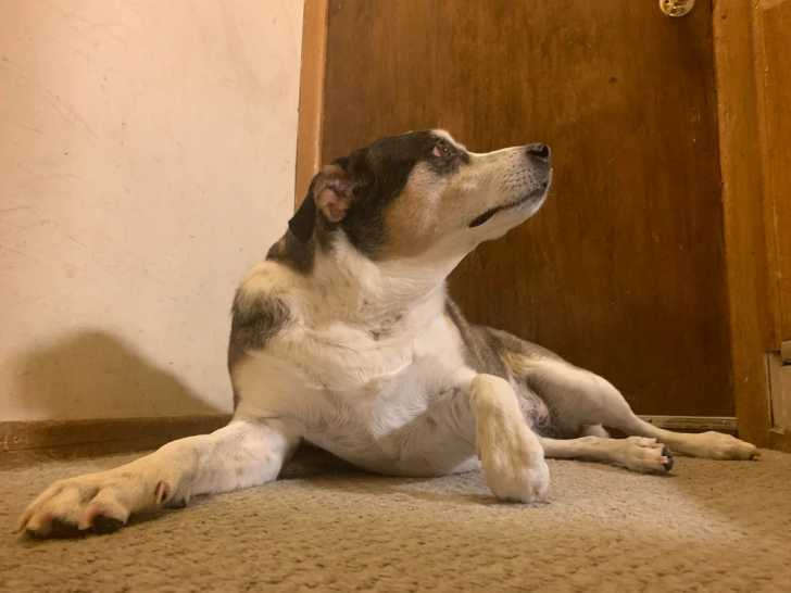 Un Rat Terrier allongé sur une moquette