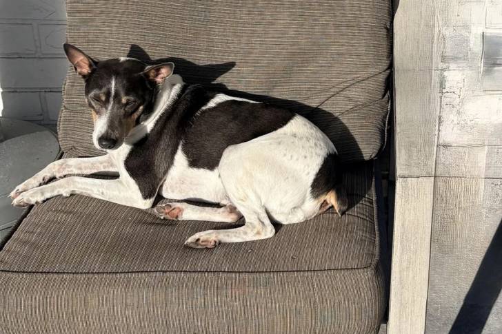 Un Rat Terrier allongé sur un fauteuil