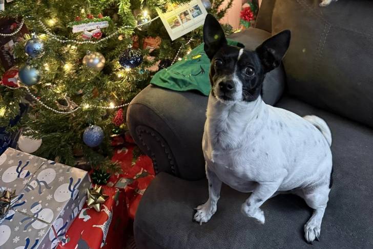 Un Rat Terrier assis sur un canapé