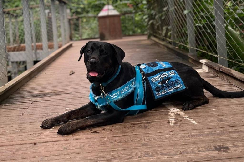 Ce Rotticorso s'amuse avec un jouet accroché à un arbre