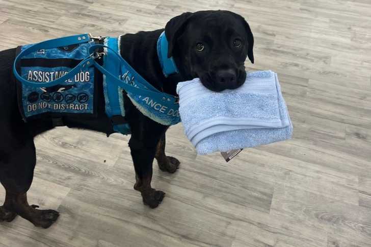 Ce Rotticorso s'amuse avec un jouet accroché à un arbre