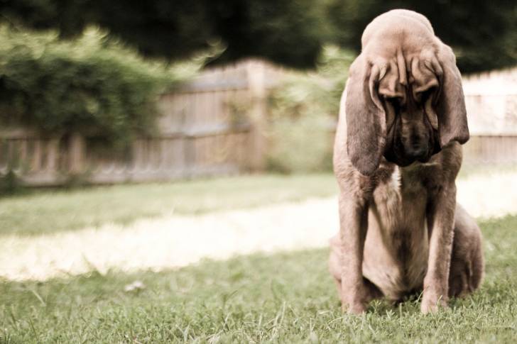 Sortie dans le jardin d'une meute de chiots Saint-Hubert