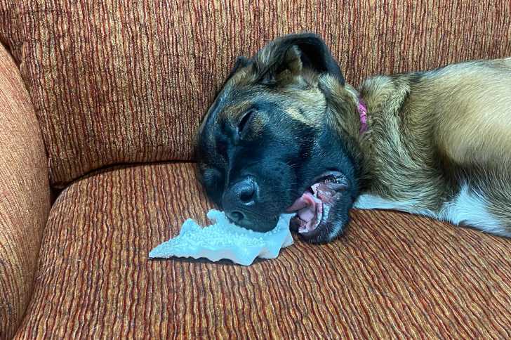 Un Saint Shepherd, allongé sur un canapé et semblant dormir